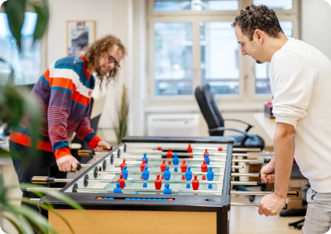 Bei uns erwarten dich zeitgemässe Arbeitsbedingungen und noch ein paar Extras. Wir setzen auf flache Hierarchien und legen grossen Wert auf Meinungen und Inputs aus dem Team.