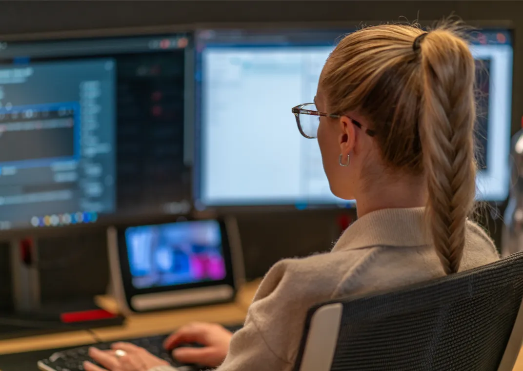 Alle Arbeitsplätze sind mit höhenverstellbaren Tischen, zwei Screens und ergonomischen Bürostühlen und Peripherie-Geräten ausgestattet.